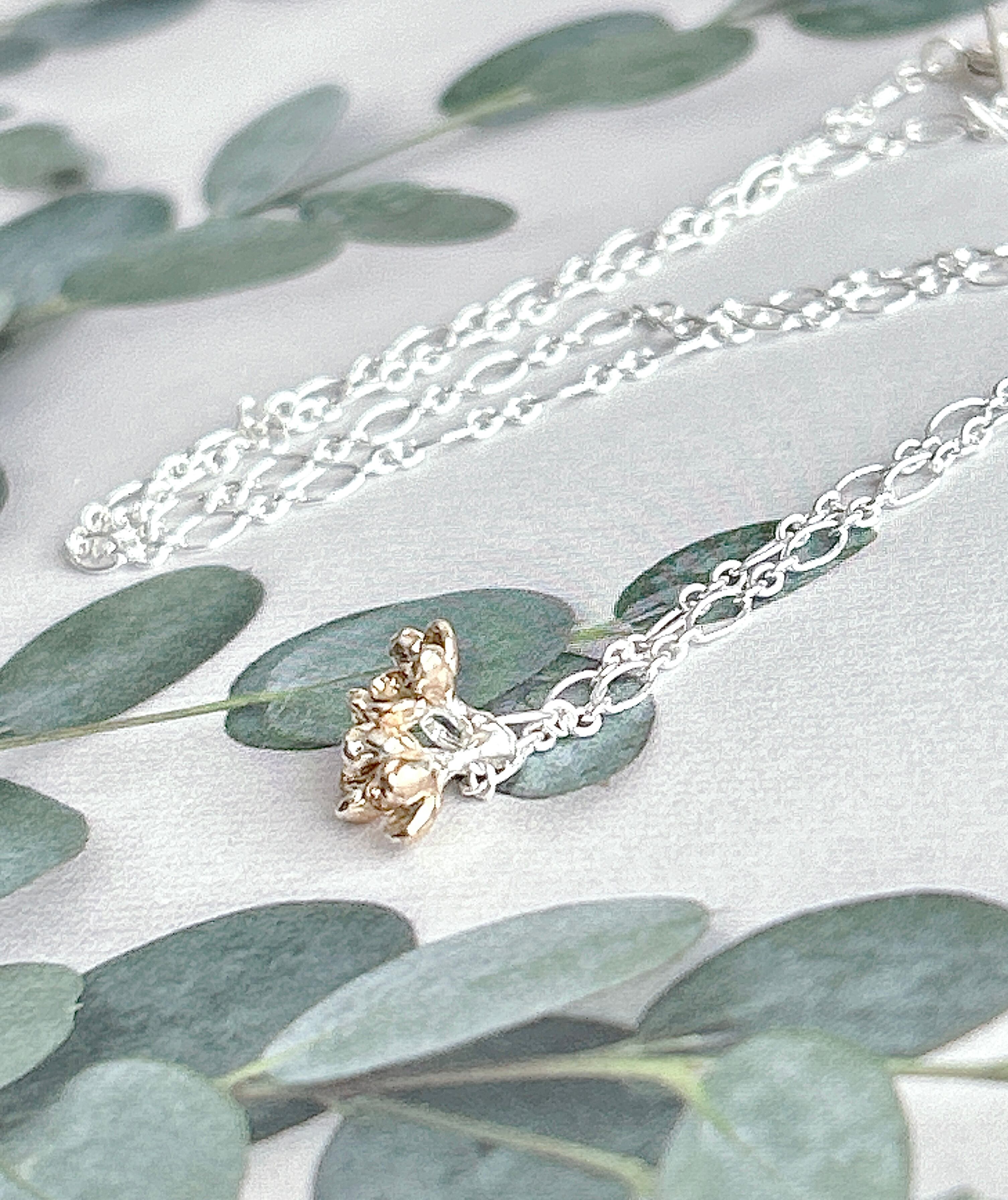メッキを施すことで金木犀らしさが表現され、小さくも存在感のあるトップになっています。