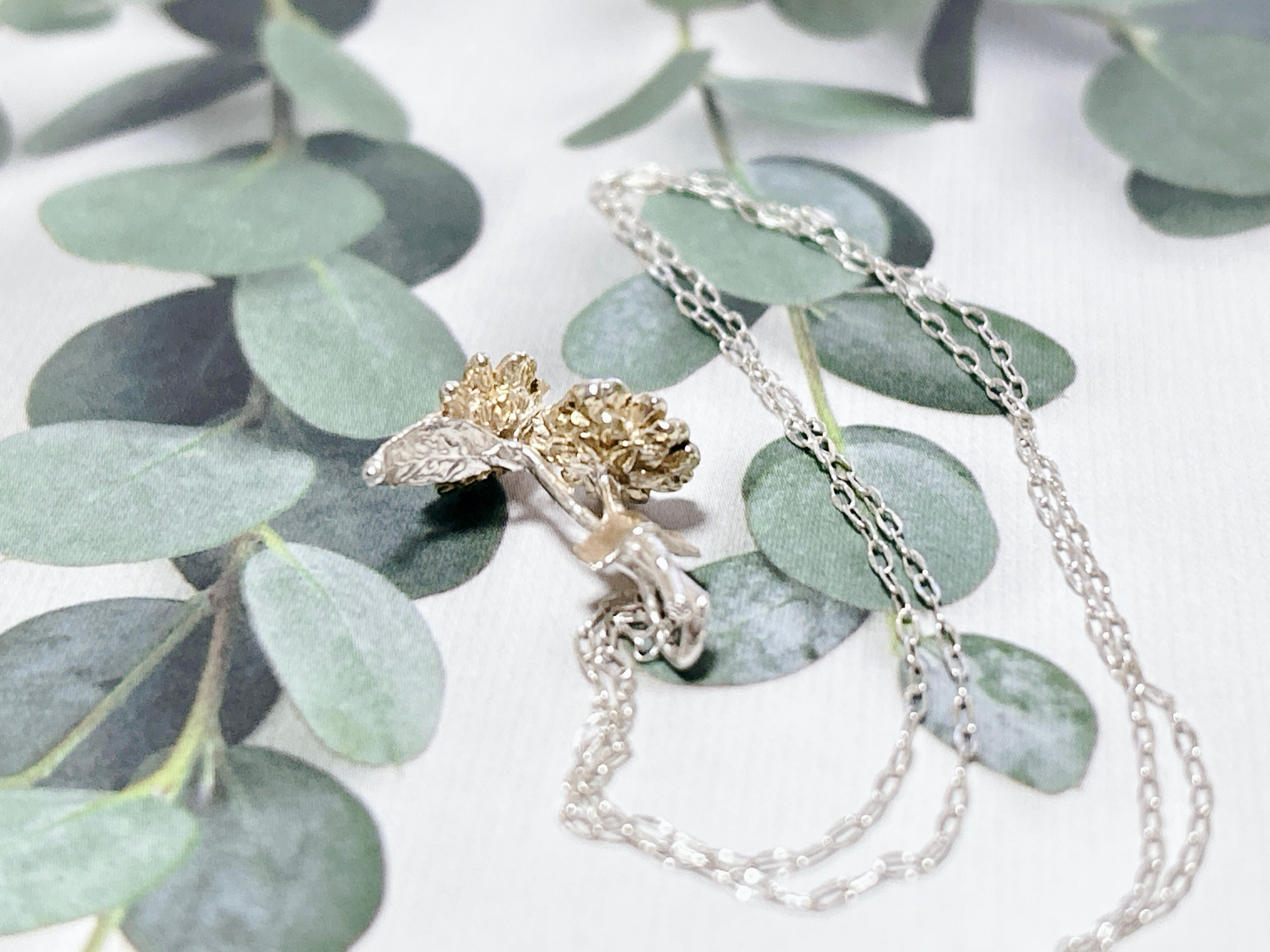 ひまわりの異なる品種、モネとゴッホをそれぞれモチーフとして添えたネックレス。