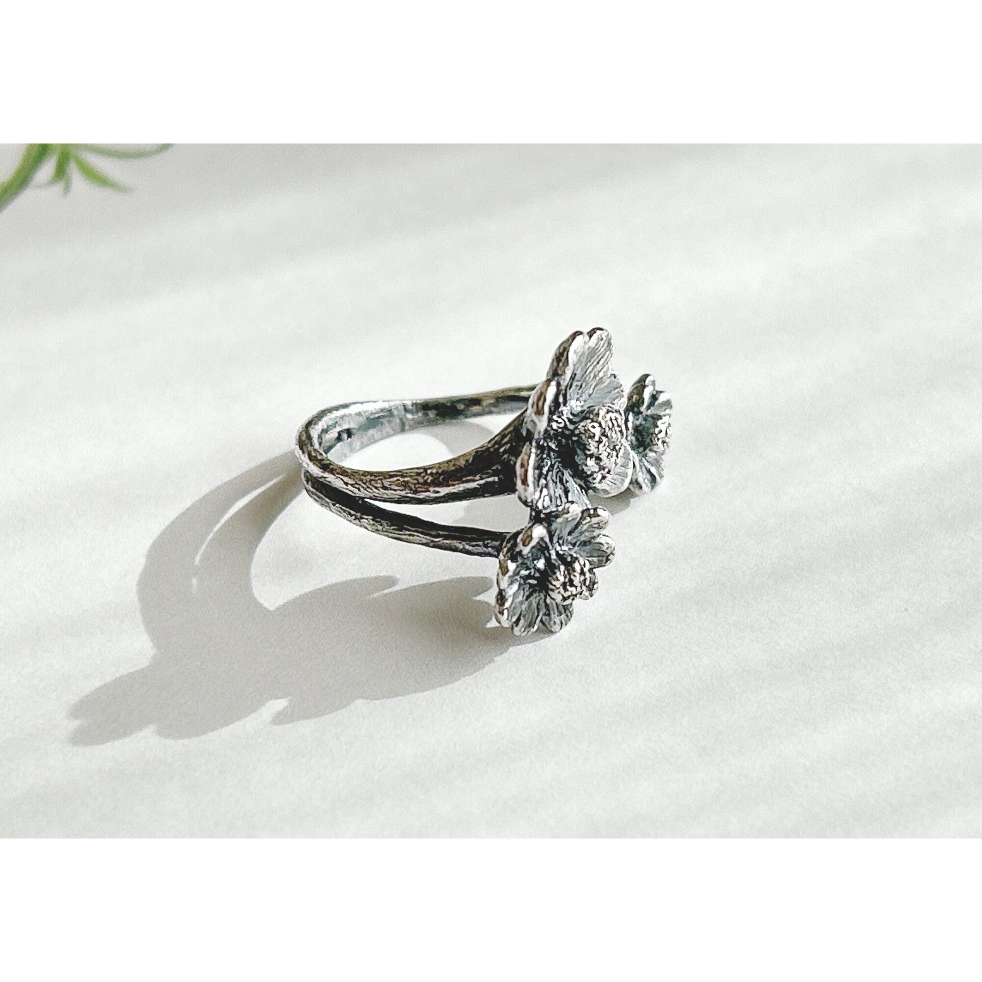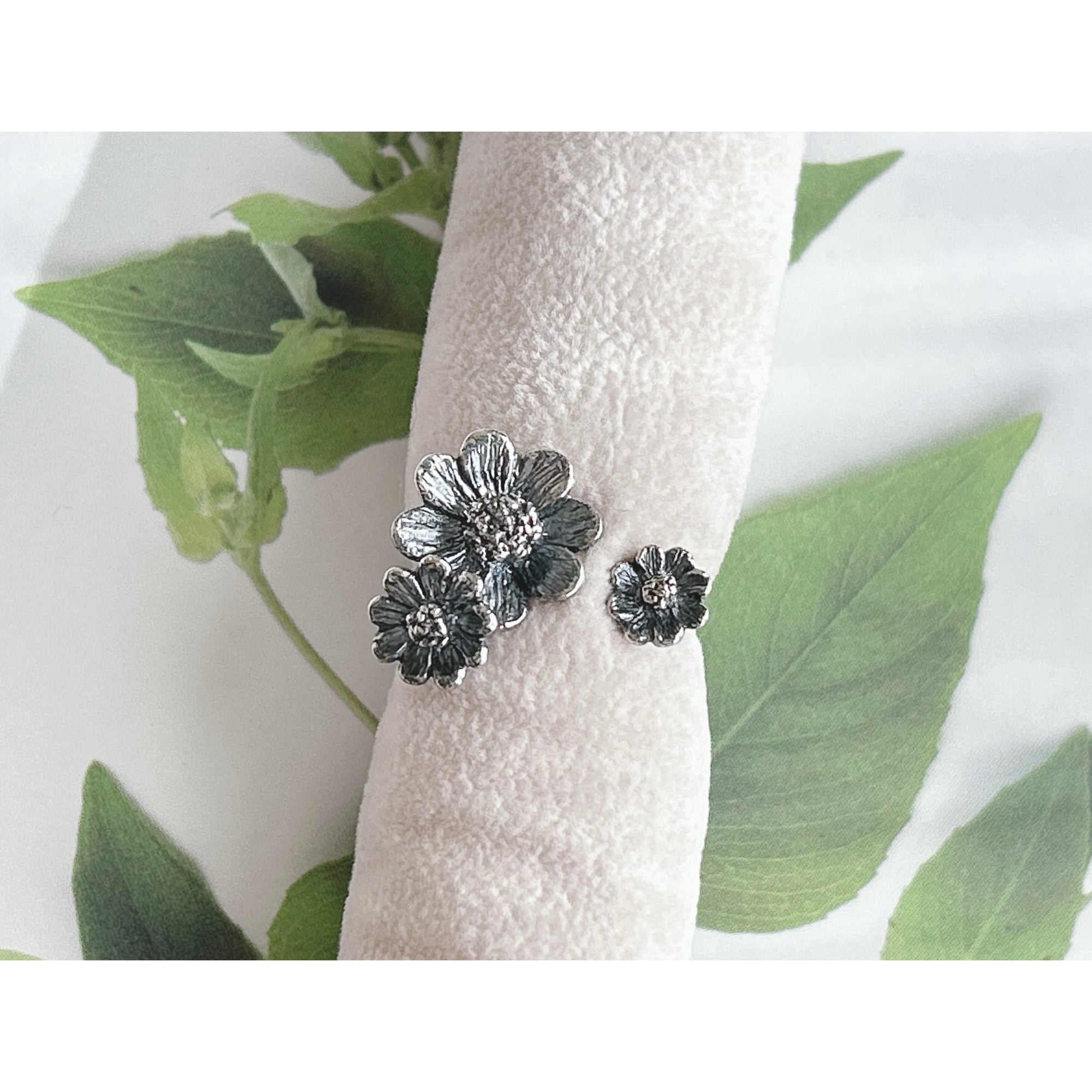 正面に空間があるので、着けた時に指の隙間からコスモスが咲いてるような見た目になります。