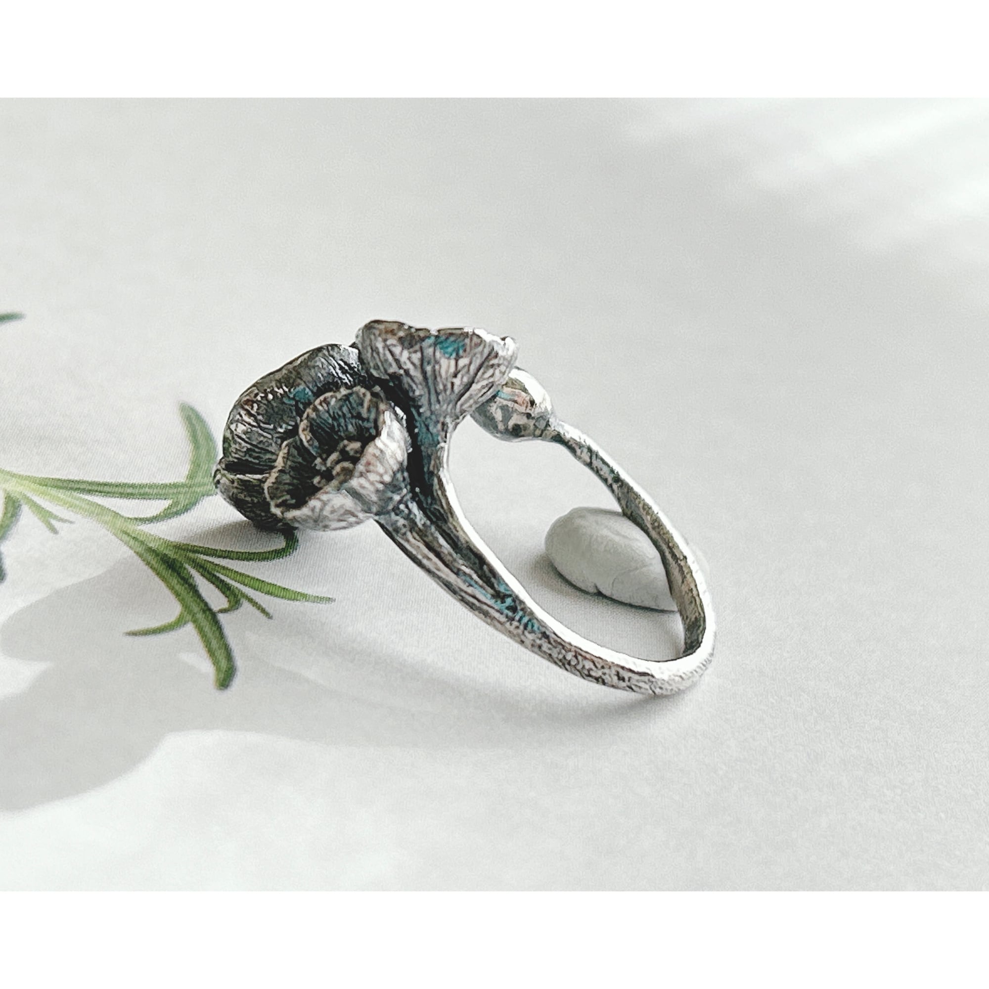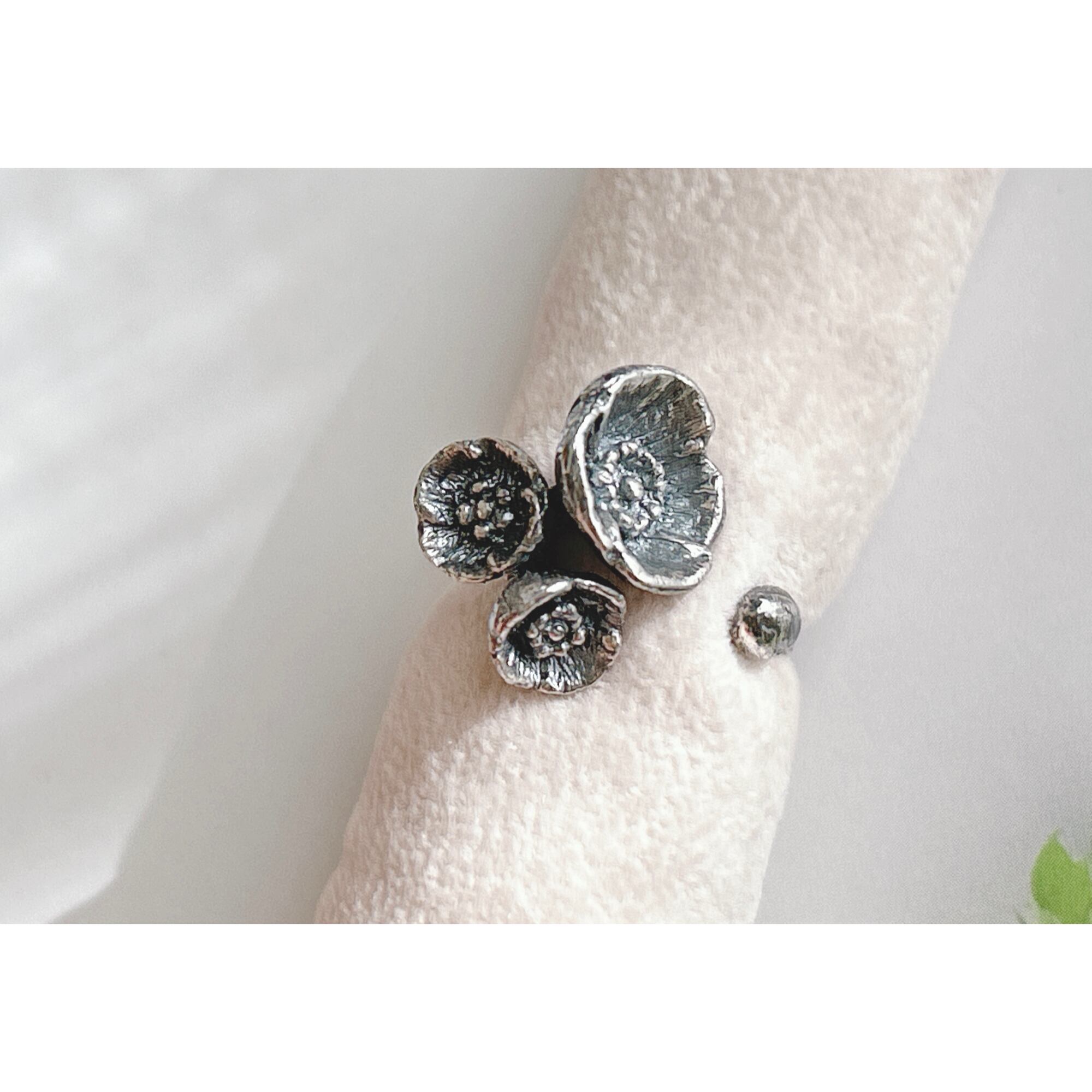 指の隙間から咲くような、ポピーをイメージしたリング。