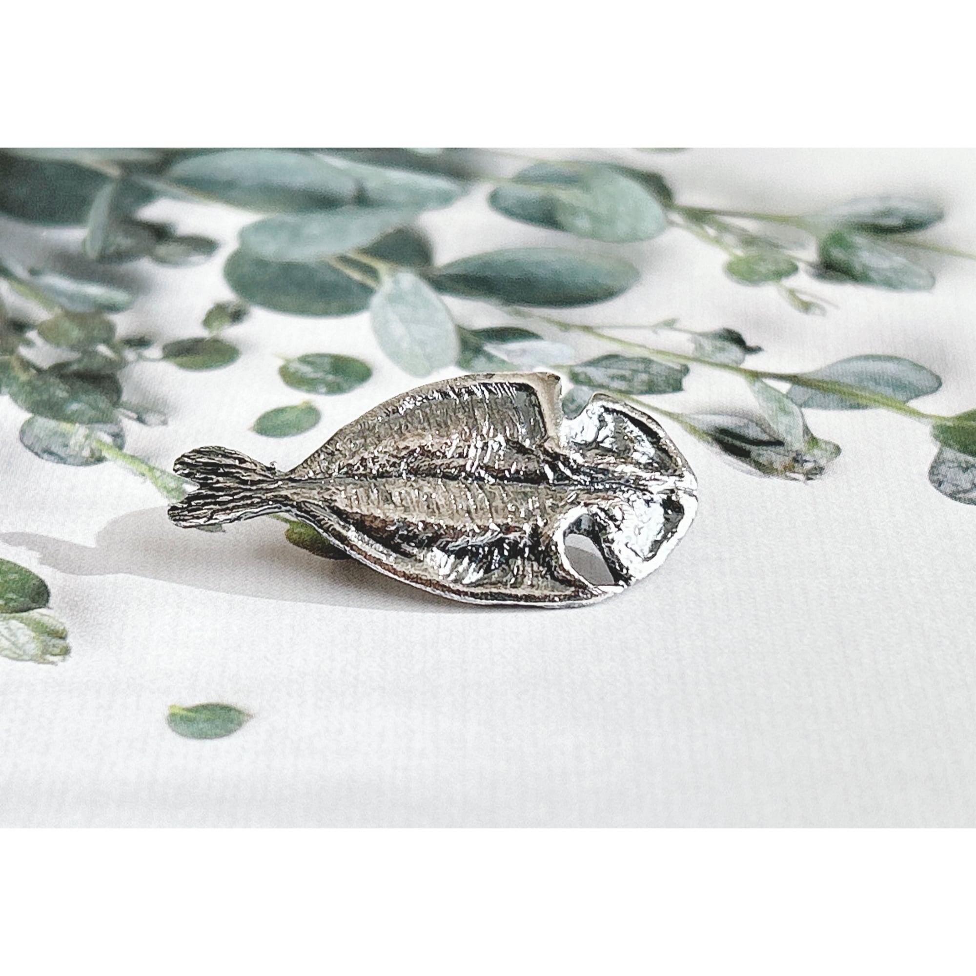 アジの開きをイメージしたブローチです。