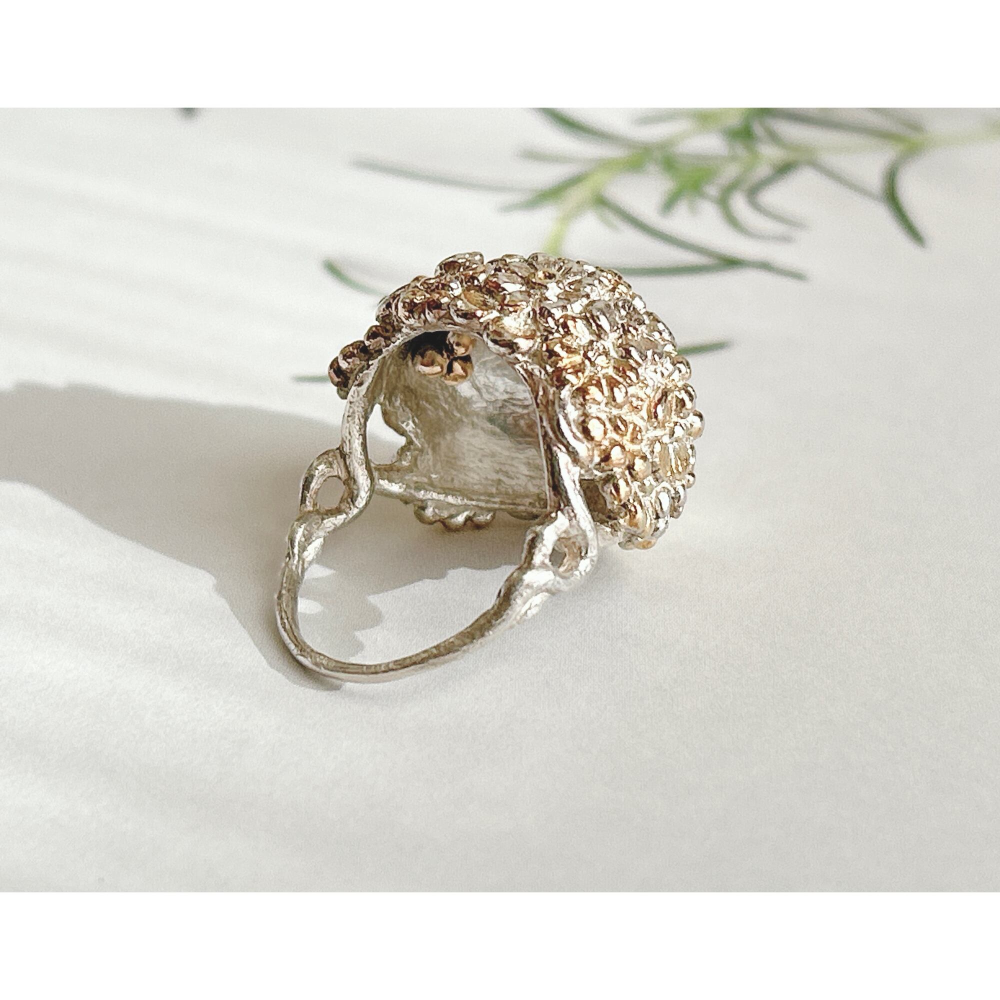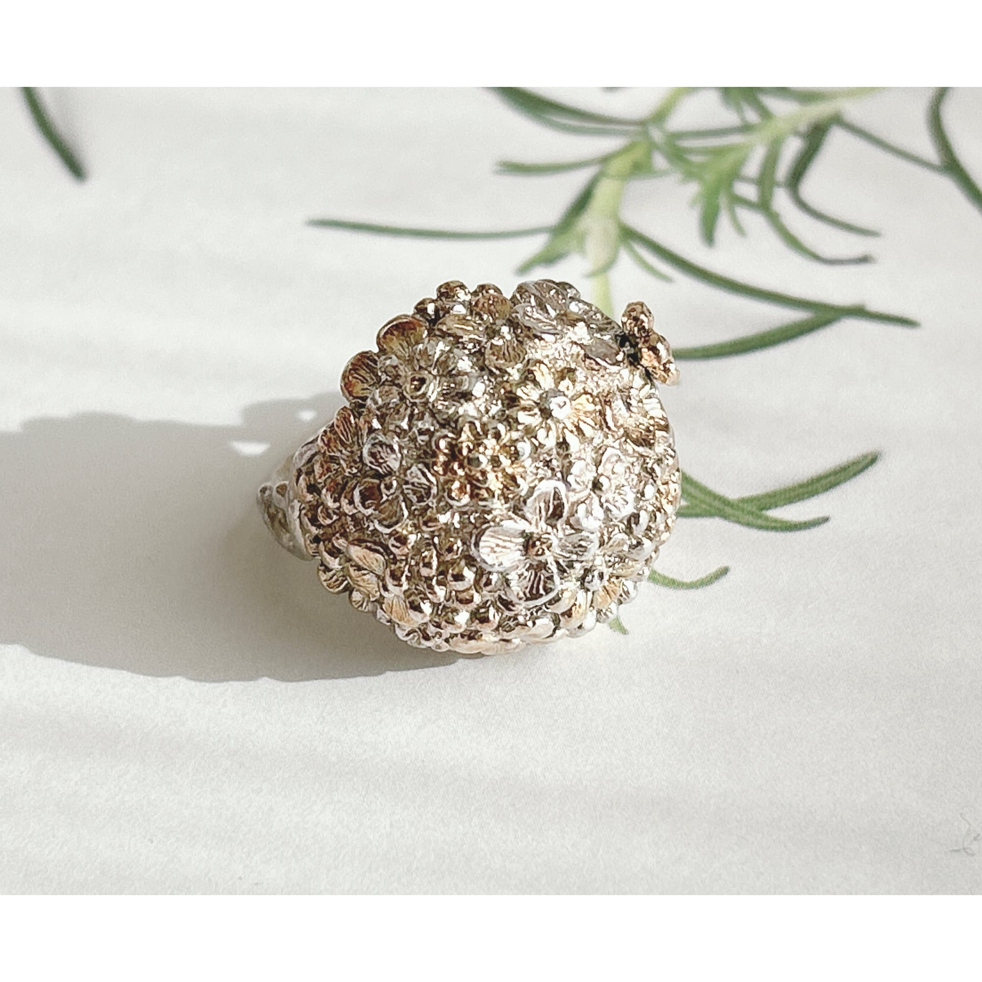 丸い大き目のトップに、一輪だけぽこっと浮き出ています。