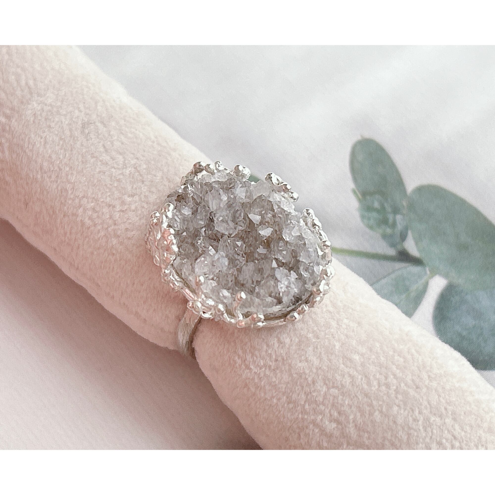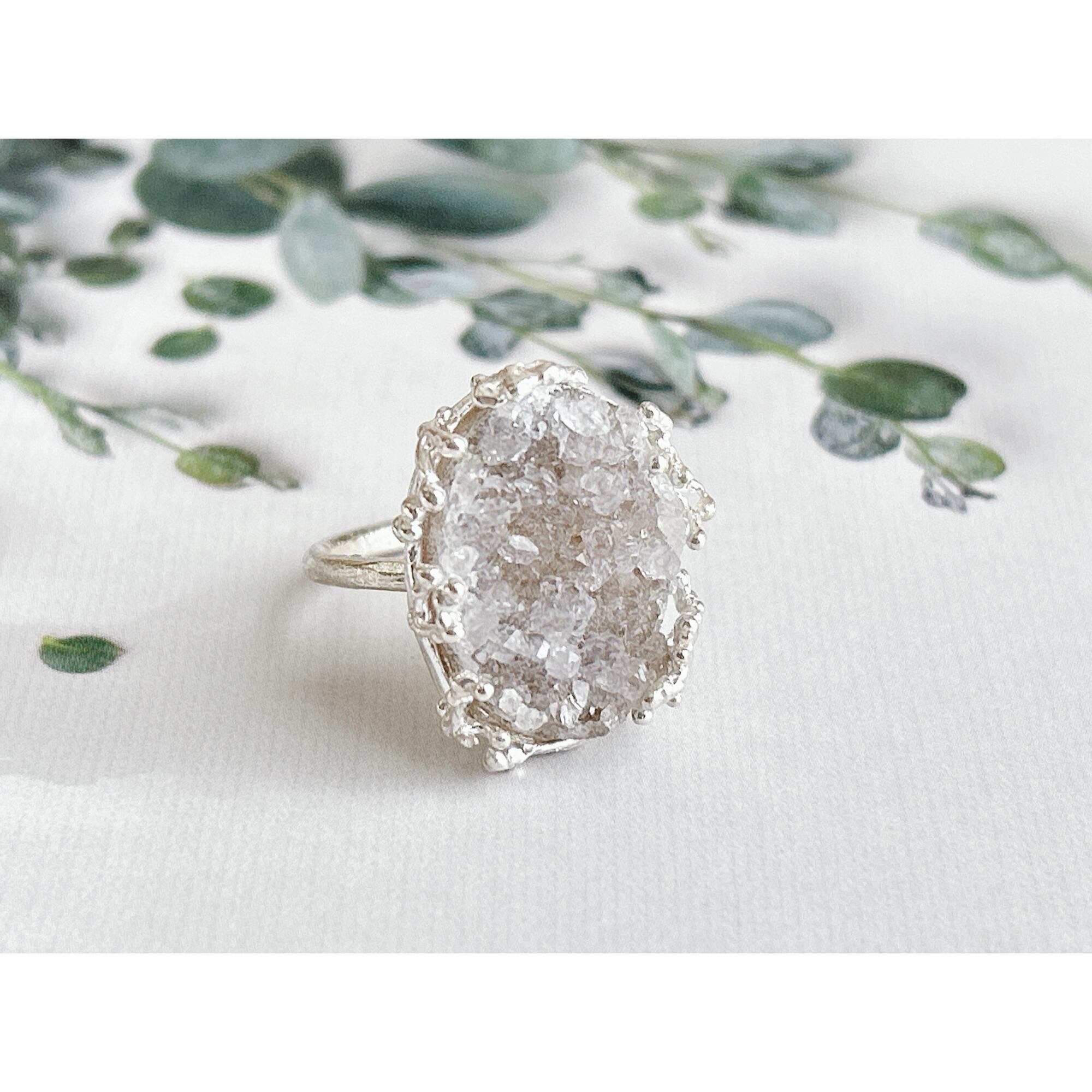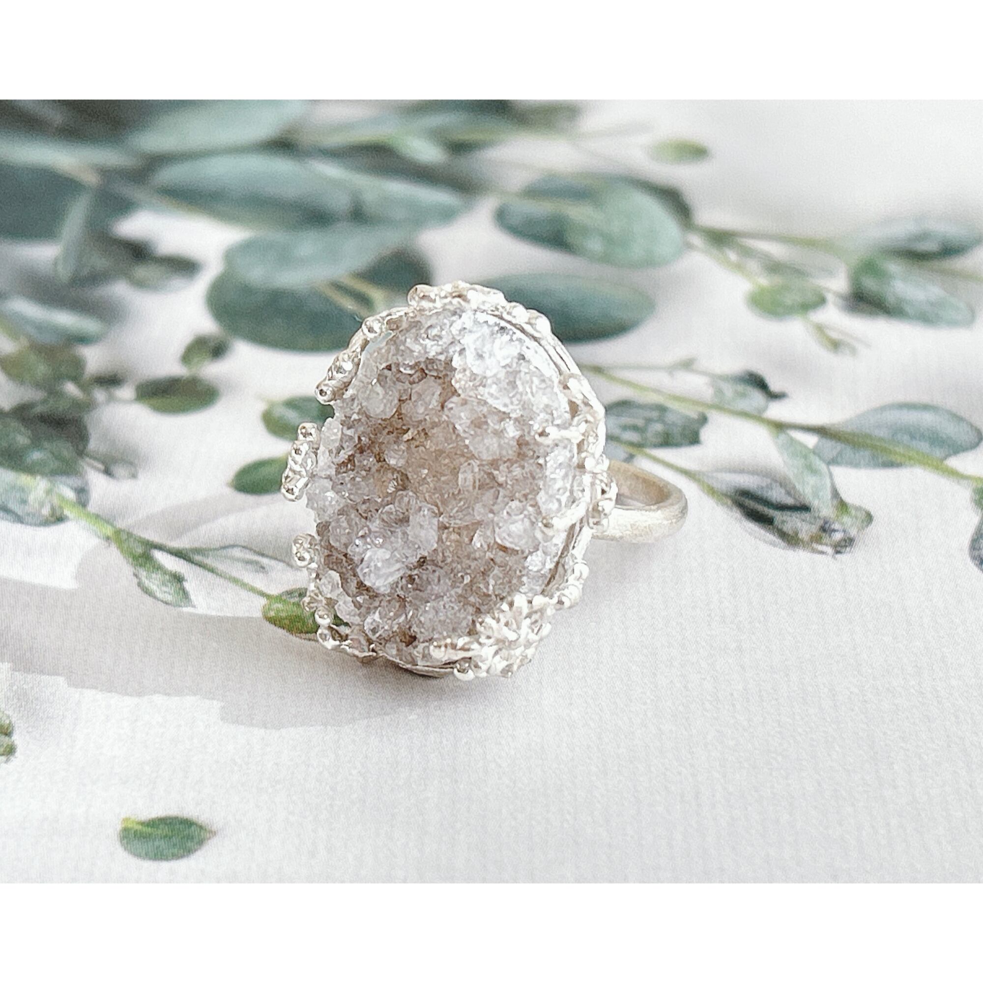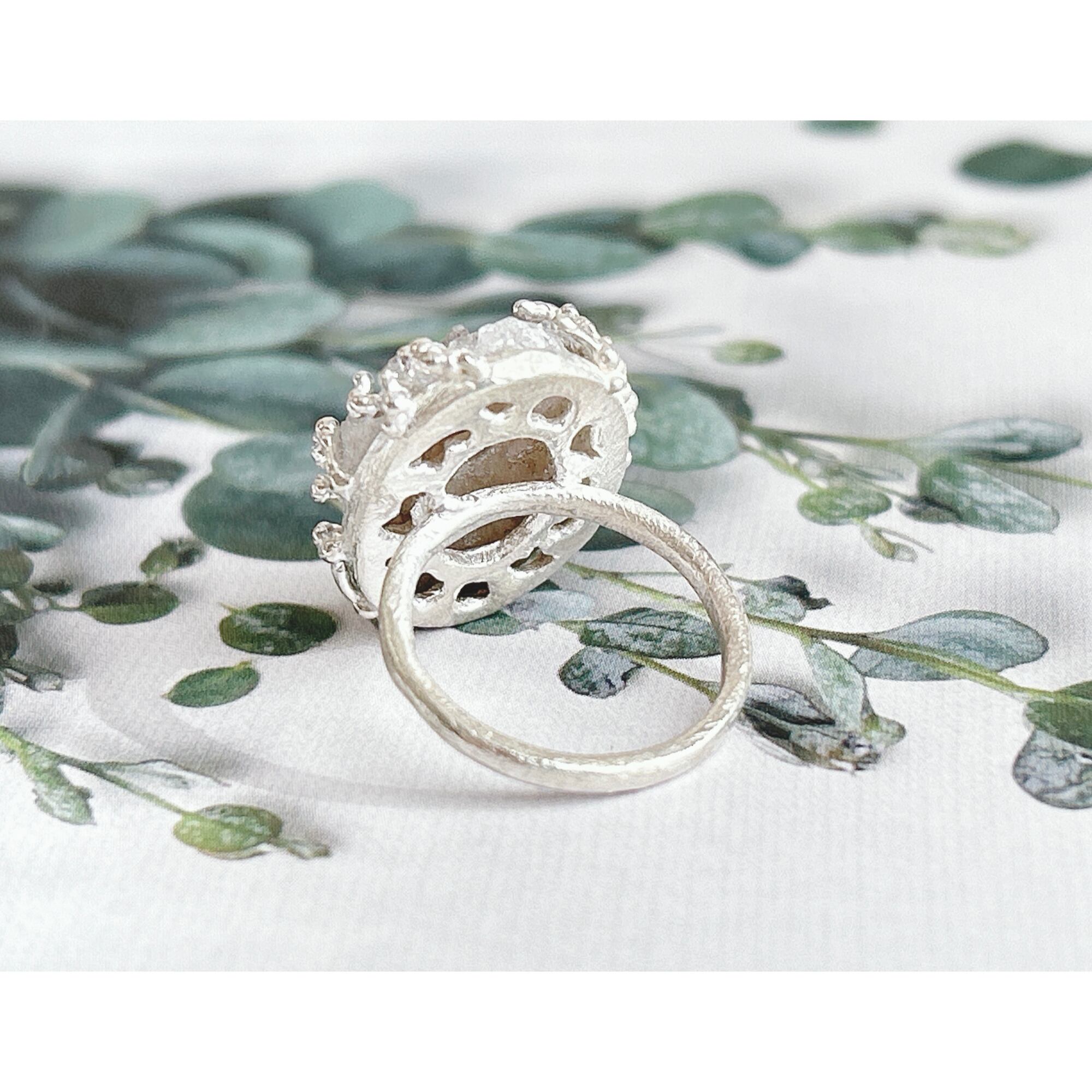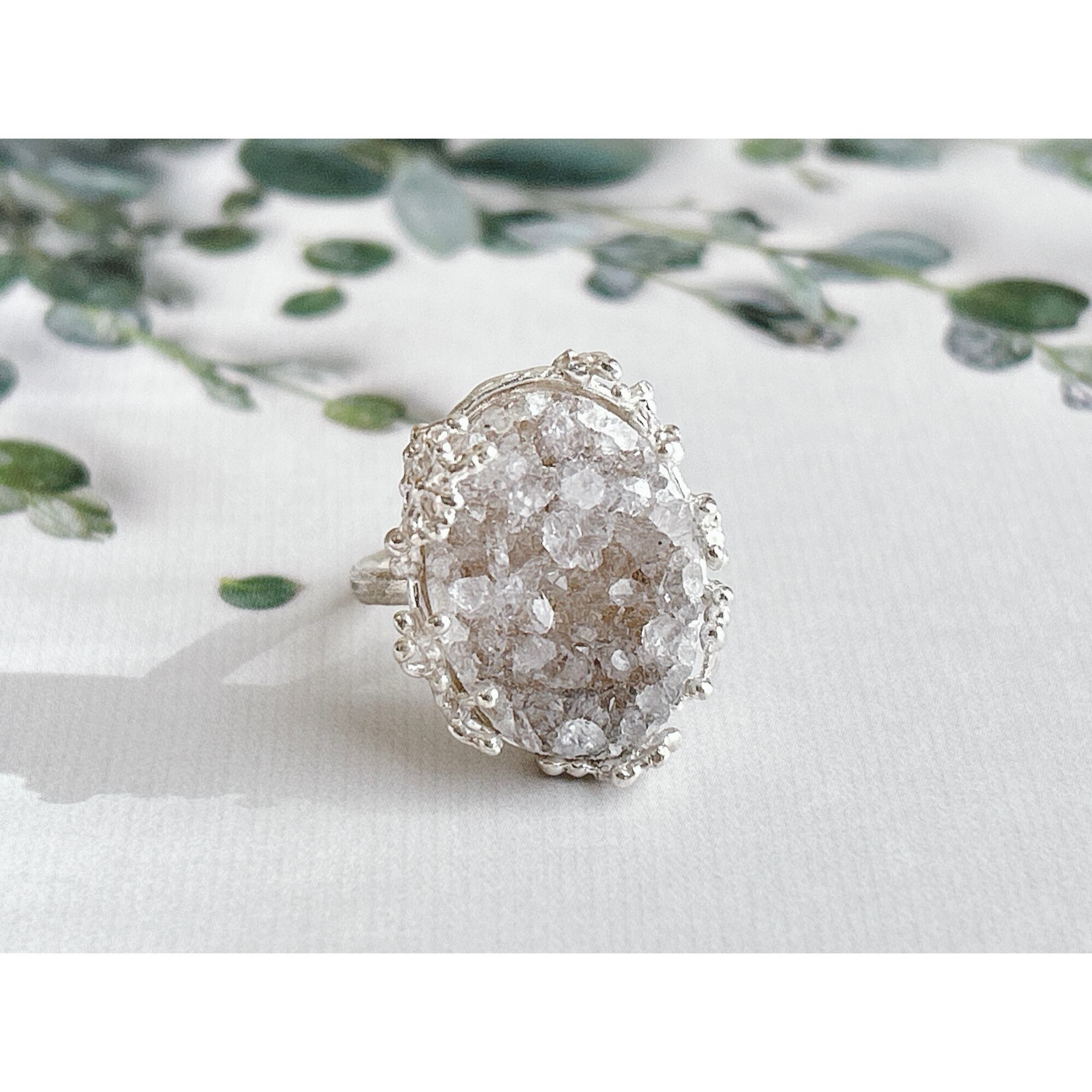 ドゥルージーアゲートに雪の結晶を散りばめたリング。