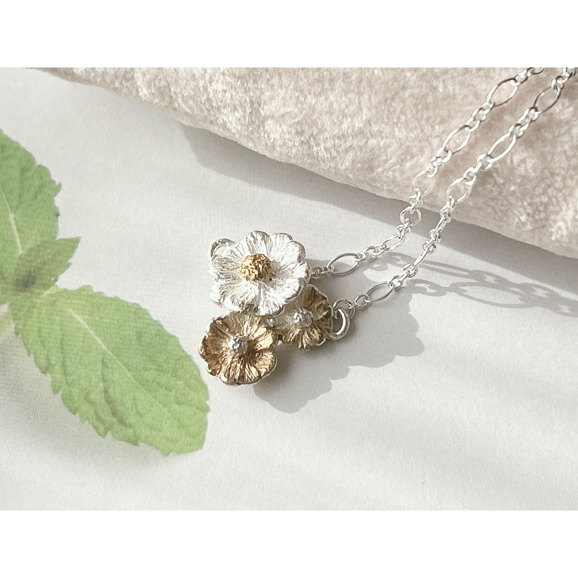 金メッキとピンクゴールドメッキで着色、指輪とセットで着けても単体でもかわいいと思います。
